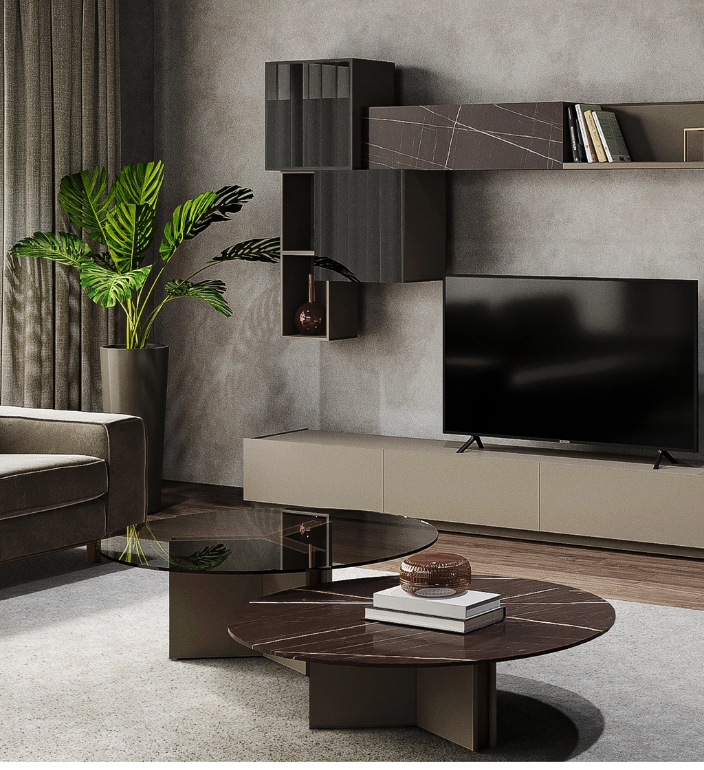 - Picioare din material lăcuit bej mat.
